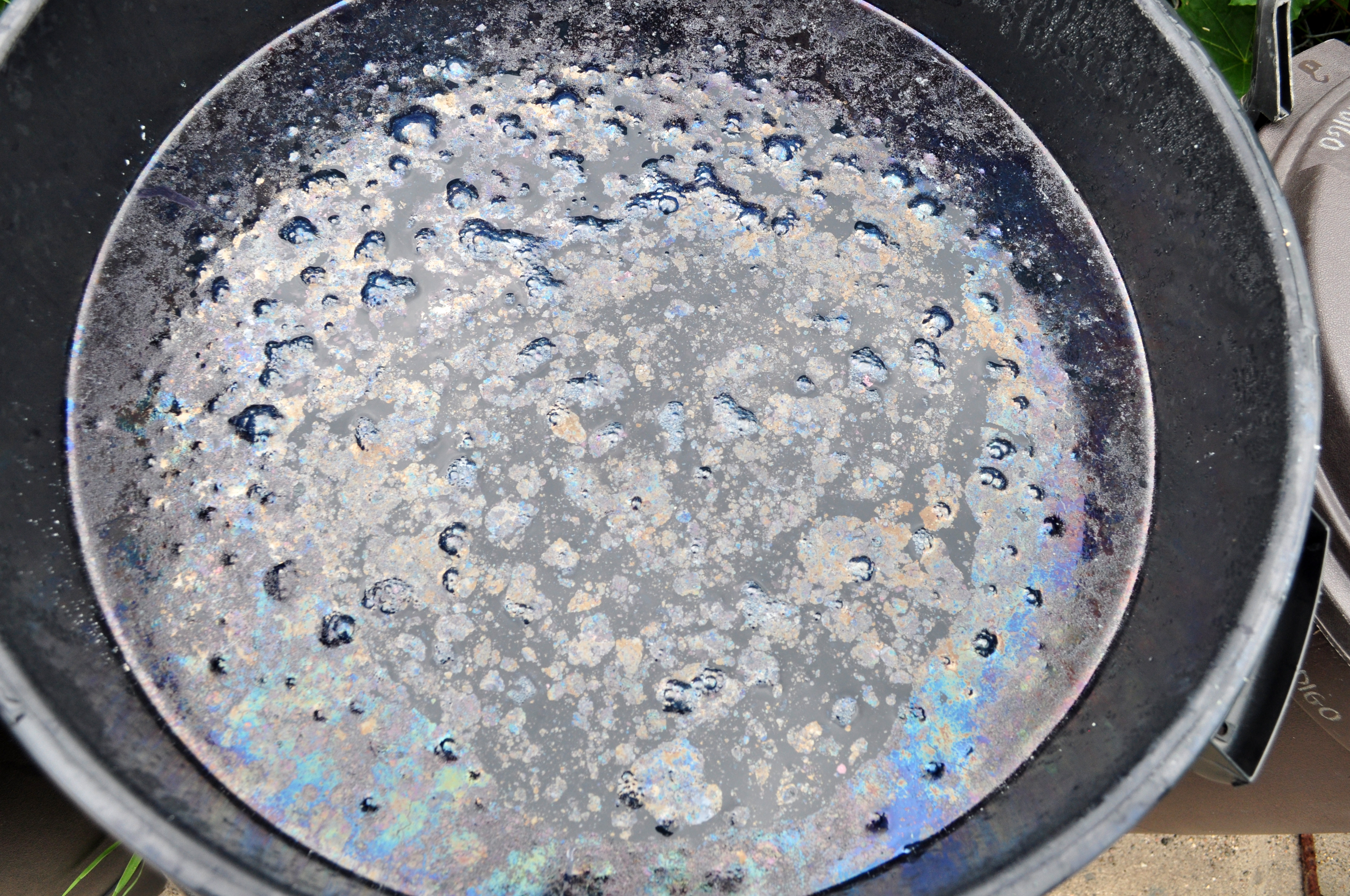 With the strangeness and unpredictability of this season, fear began gnawing at me. I felt that the feeding and care of my friend wasn’t producing the desired results quickly enough. I feared that we wouldn’t have enough quality time together this season. It seems I became blinded by greed and I was careless in my feeding and coaxing. I wanted blue and I wanted it sooner than my friend was willing to give it. Healthy and strong, steadily fermenting is how my friend was earlier this summer. Slowly it released the blue color I was after! Rather than being patient and satisfied I allowed greed and fear to enter my heart. At that point I made some fatal decisions. I thought I could get my friend to consume more than it wanted. I force-fed extra bran and sugar in amounts that I had never done before. Fermentation was already underway and all was right, but somehow I thought I could speed things up. The weather turned really hot just as soon as I overfed my friend and what happened next is something I never want to see (or smell) again. Within two days my friend developed a huge cap of grayish-brown material that covered its entire surface. The look of the stuff was frightening! I removed it and it kept returning. The vat developed a truly “off” odor that any indigo-dyer could differentiate from the usual fragrance of a healthy fermentation vat. I could not bear to photograph the cap that developed. I should have but I couldn’t because it would have felt like photographing a friend as they lay dying. In retrospect, I am sorry that I did not photograph the final days of my friend’s life. Like an anatomy class for medical students, photographs of this process would be instructive to dyers as how this particular death progresses.